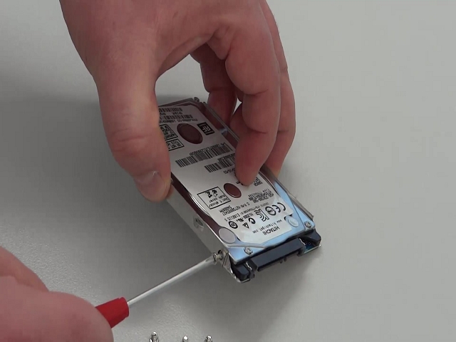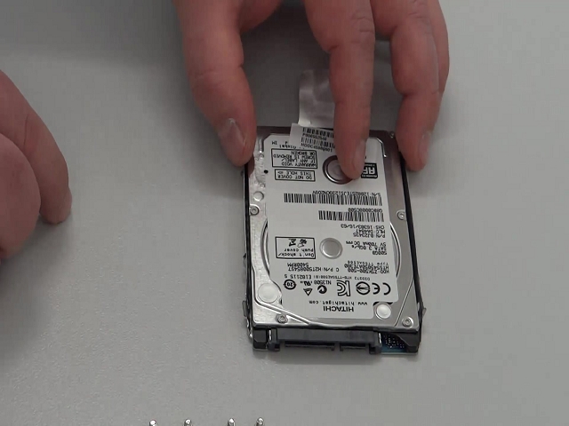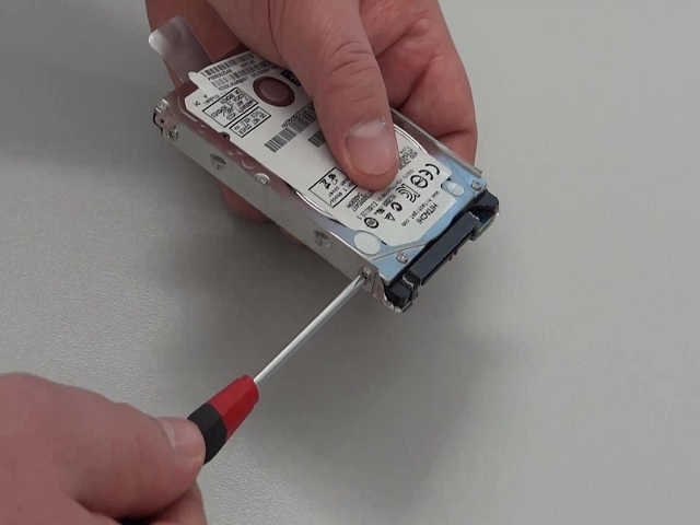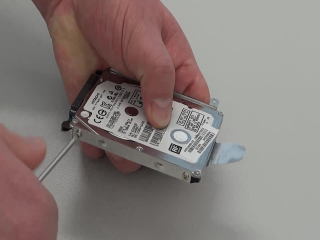 1. Posez le nouveau disque dur sur le support et fixez-le avec les 4 vis retirées précédemment