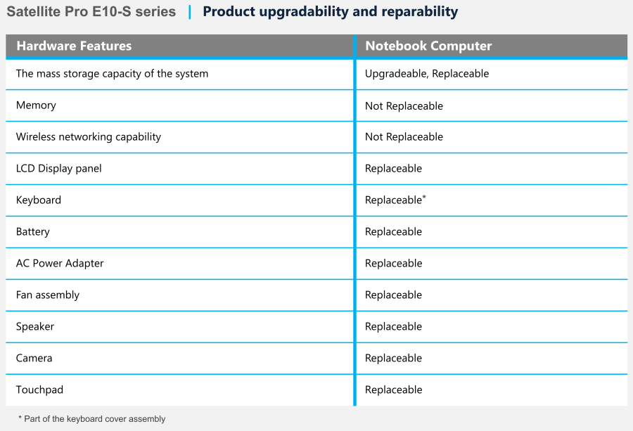Customer Replaceable Units (CRU) Procedures - Satelllite Pro E10-S series:
