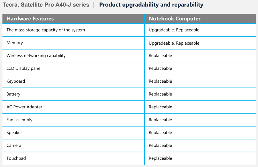 dynabook Europe warrants the availability of spareparts or their functional equivalent for the products for a period of five (5) years from the expiration of the term.