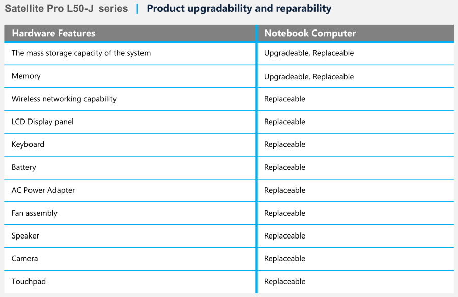 Customer Replaceable Units (CRU) Procedures - Satellite Pro L50-J series: