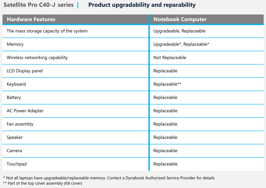 Customer Replaceable Units (CRU) Procedures - Satellite Pro C40-J series: